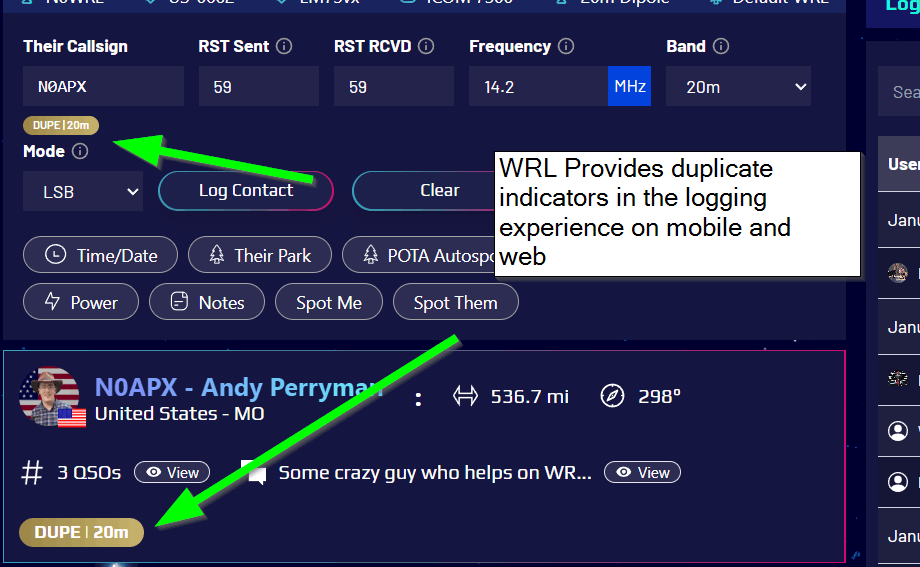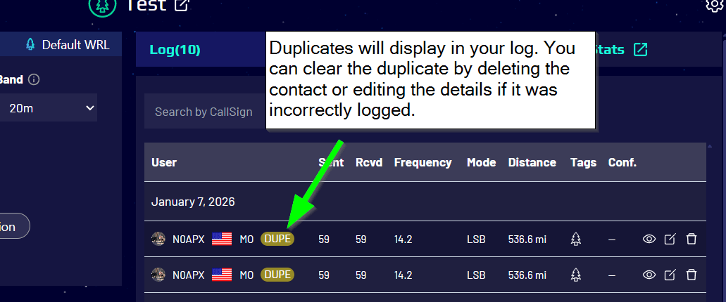 Duplicate detection is a critical feature of World Radio League to help you keep a clean record of contacts, as well as ensure you don’t accidentally log duplicates when contesting or during an activity such as POTA.